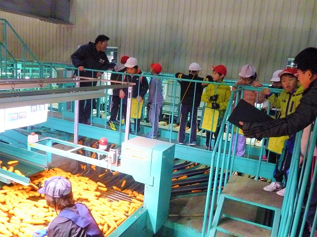 10月28日、京極町立京極小学3年生の児童24名が、京極の人参集出荷選別施設の見学に訪れました。児童たちは人参が出荷されるまでの一通りの工程を見学し、普段見ることのない機械を見て、気になったことがあればその場ですぐに質問をしていました。児童たちは「機械がたくさんあってすごいと思った。作業している人もすごかったし、学校に戻ったらすぐにまとめたい!」などと感想をなど述べており、多くの事を学んでいただけた様子でした。
